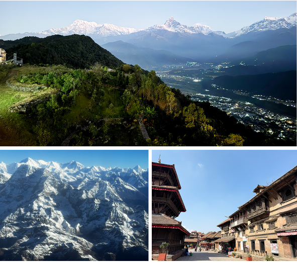 お寺の数は人口の10倍ともいわれているそうで驚きです!上:ポカラから望むアンナプルナ連峰